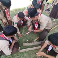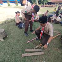 Setiap regu langsung sigap mengeluarkan perlengkapan wajib: dua buah tongkat pramuka berukuran 160 cm dan dua utas tali tambang pramuka berukuran 5 meter. Suasana menjadi riuh namun teratur dengan bunyi gesekan tali dan ketukan tongkat.