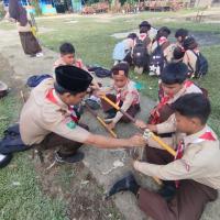 Kakak Pembina meniup peluit panjang, mengumpulkan regu-regu di tengah lapangan. "Bayangkan kalian sedang di tengah hutan dan salah satu teman kalian mengalami cedera kaki. Tidak ada ambulans, yang ada hanya tongkat dan tali," seru Kakak Pembina memulai simulasi.