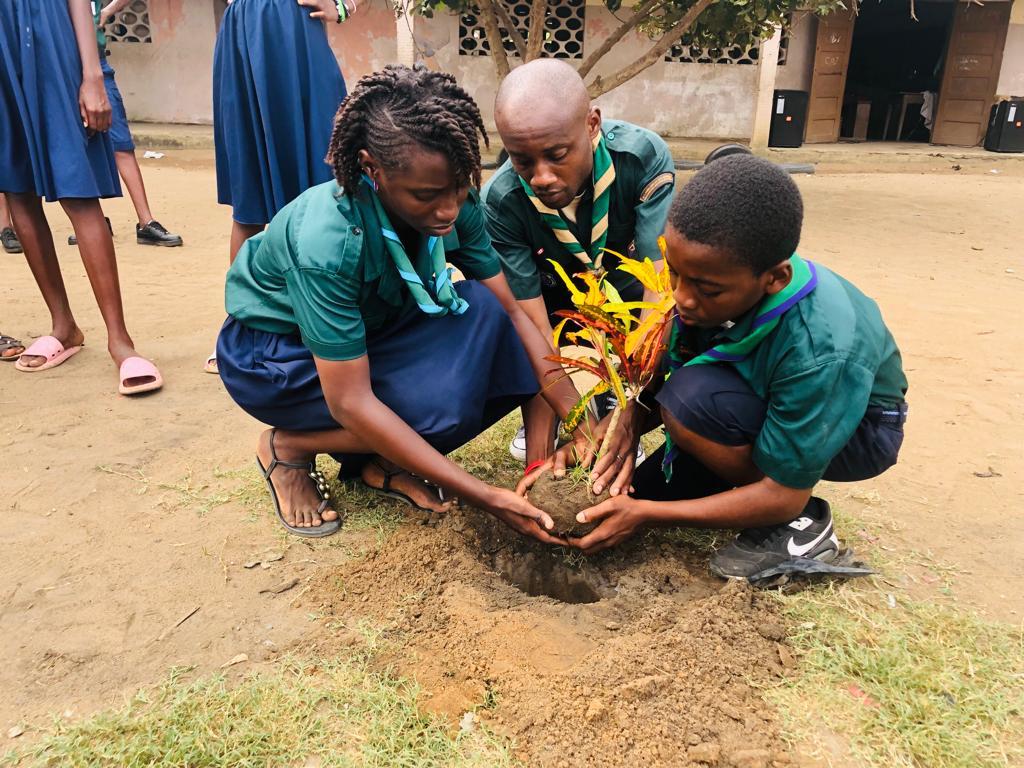 Pour y parvenir, nos éclaireurs pendant leur Aventure effectuée les 12,13 et 14 Mai 2023 ont initié une action dénommée UN ECLAIREUR, UN ARBRE à Abobo (Commune située à Abidjan, Capitale économique de la Côte d'Ivoire). Deux essences ont été plantées au sein d'un établissement scolaire sous formes de haies.