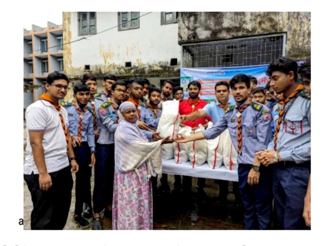 আমাদের স্কাউট দল প্রথমে দরিদ্র ও অসহায় মানুষের একটি তালিকা করে। এরপর ত্রাণসামগ্রী (চাল, ডাল, তেল ইত্যাদি) সংগ্রহ করে প্যাকেট তৈরি করি। নির্ধারিত দিনে সুশৃঙ্খলভাবে তাদের মাঝে ত্রাণ বিতরণ করা হয়। স্কাউট সদস্যরা পুরো কার্যক্রমে শৃঙ্খলা ও সহানুভূতির সাথে দায়িত্ব পালন করে।
