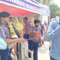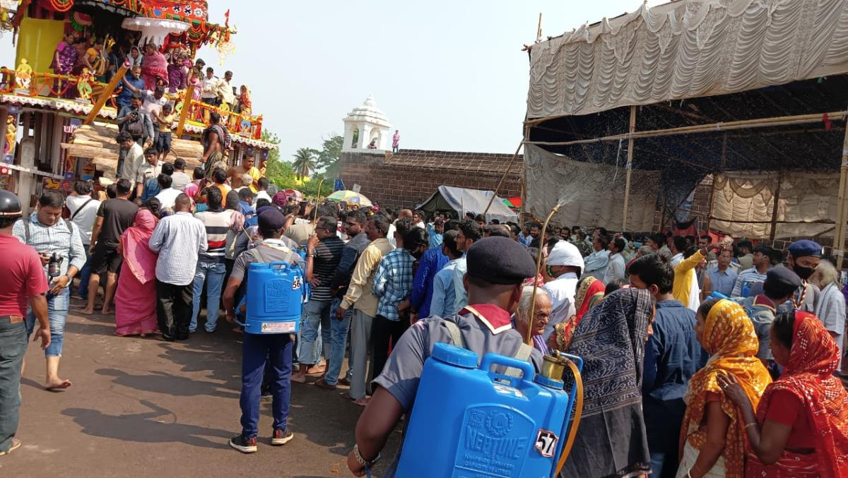 70 nos. of Rovers from different parts of Odisha reported at SHQrs. on 09.04.2022. After arrival, they were divided into 4 parts and allotted different duties such as Distribution of Curd Water, Cleaning the temple premises and outside, controlling the public rush, carrying out the casualty, etc. Then they proceeded to the venue by a bus (Public transport) with Stretcher, Water Sprayer, Tent, Dustbin, etc. They performed their duties successfully and were very much appreciated by the public.