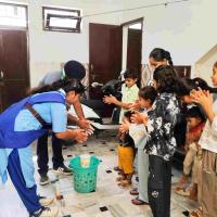 We gathered children from anganwadis and nearby neighborhoods. We explained them about protecting the environment, conserving water, and keeping hands clean. We want everyone to stay healthy and not fall sick. We told them germs are all around us though we can’t see them. These small habits help us stay clean and safe.