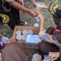 Di berbagi takjil ini kami semua berbagi berupa es campur yang di bagikan kepada masyarakat desa Sumur Kidang tepatnya di gerbang/ tugu awal masuk desa tersebut.