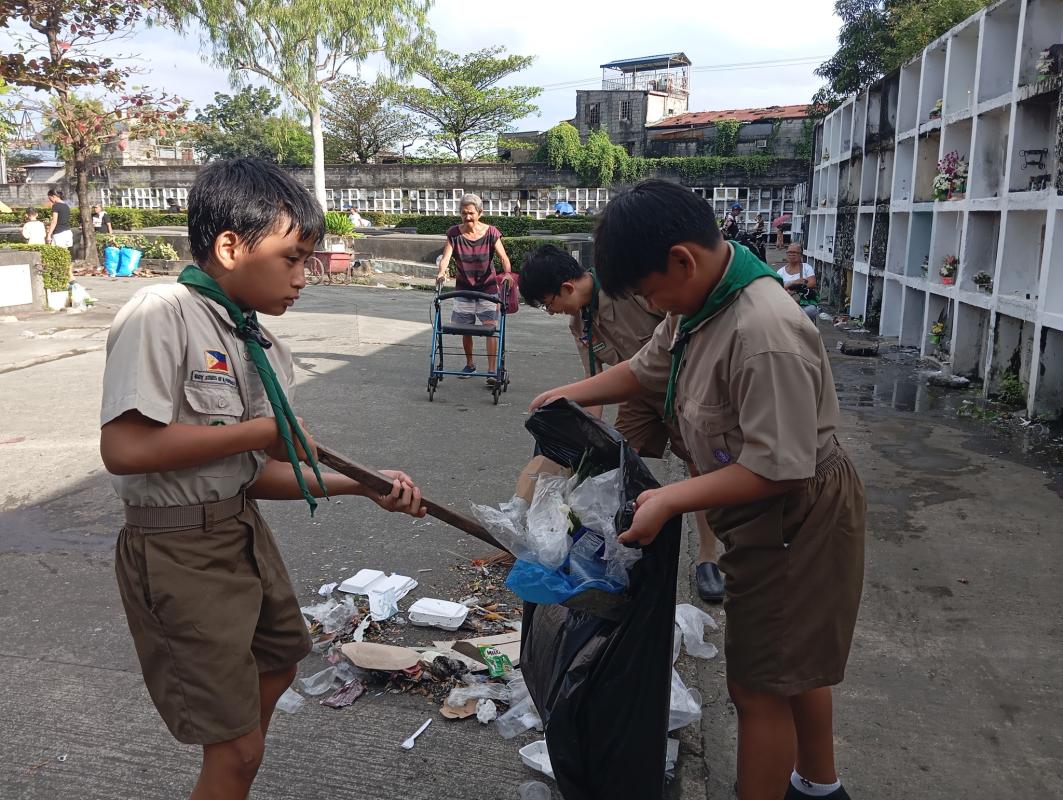 The Rizal Council organized Scouts into teams to clean cemeteries, schools, and public spaces after Undas. Equipped with gloves and trash bags, they collected waste, cleared debris, and restored cleanliness, while leaders ensured safety and guidance. The activity combined waste collection with maintenance, fostering teamwork, responsibility, and environmental awareness.