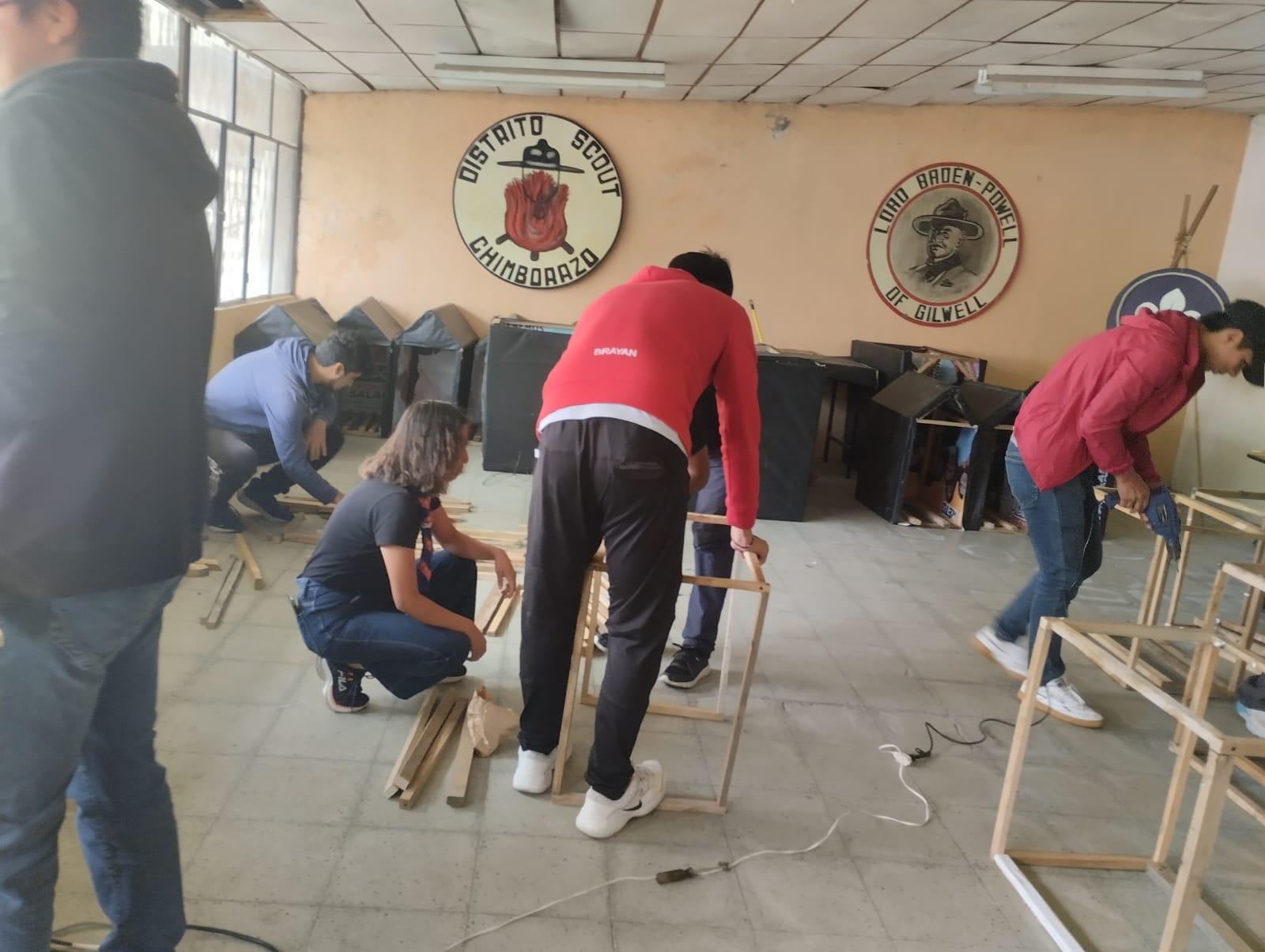 1.Planificar lugar de construcion, modelos y numero de casas , materiales y sus ubicaciones. Socializacion con los partidos politicos para la donacion de la pancartas usadas: igualmente con grupos scouts y organizaciones de la cuidad para su apoyo-2.Actividad de financiamiento - Primero se desarmo las pancartas y se corto las madera en piezas para ser unidas, luego ser cubiertas por la lona y para finalizar colocamos un almoda para que sirva de colchon 3entrega en lo lugares destinados .
