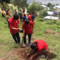 Celebrating social forestry day by planting fruits sapling for future generations. Tashidingkha Central School, Punakha