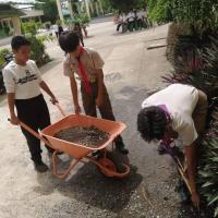 Clearing out piles of gravels in our school campus
