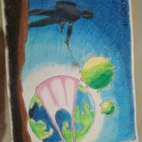 I draw the painting in my drawing book , In this painting the earth wear a mask nd a man protect her .