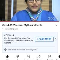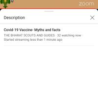 Bharat Scout and Guides India conduct the webinar on COVID-19 vaccination myths and facts.Many resource personal join the webinar and motivated us to take vaccine to keep myself safe from pendamic.The webinar share a lot of positivity among the viewers. They shared us the myths and Facts of taking vaccine.