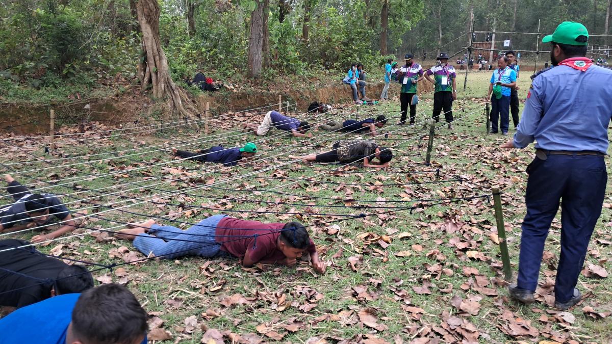 We practiced different crawling methods in a controlled environment, moving under low obstacles and simulating emergency conditions like smoke or blocked paths. Team members guided each other to maintain safety and proper movement.