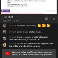 The programme started with BSG Prayer followed by Welcome address by honourable Mr Raj Kumar Kaushik, Director of the Bharat Scouts and Guides and Mr Amar B Chettri, Deputy Director of Scouts (Boy Programme). After the Welcome address, Session on "Storytelling" was delivered by Ms Luz L Taray, Director, Communications and Partnerships World Scout Bureau, Asia Pacific Support Center where she has explained in details - What is storytelling, components of storytelling, forms of storytelling, connecting with audience, structure of storytelling, style of storytelling, forms - photos, infographics and audiovisual.