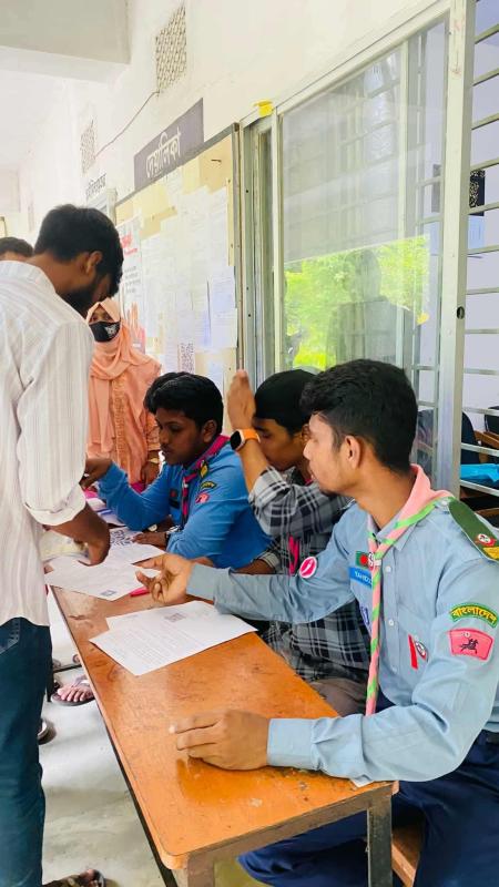 Rover Scouts of Sitakunda Degree College set up a Help Desk to guide students and guardians during the college admission process. They assisted with online form filling, maintained discipline, and supported those with special needs. Their dedicated service ensured a smooth, inclusive, and accessible admission experience for all.