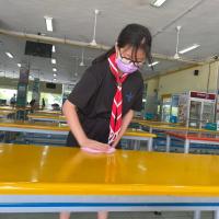 11th April, we gathered in the canteen and met with the school OM. We discussed on the allocation of the cleaning of the canteen and the hall. We wipe and disinfect the canteen tables and chairs. We also clean the school hall and set it up for the exams by arranging the tables.