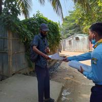 Giving poster for preventing dengue faverr. And spraying dengue prventing sprey.