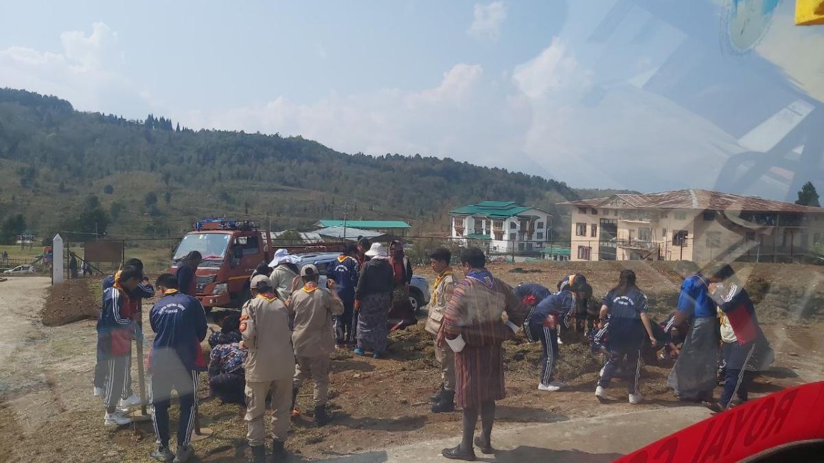 The project was at the heart of Tsirang dzongkhg that is Damphu town. Whereby few scouts gathered and helped the people in the centre to patch some grasses. It was simply to enhance the sustainable development by bringing the grass from nearby places and patching them instead of planting new contaminated seeds.