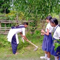 Green your school...The guides of Chandrabhag Srikrishna Girls High School Guide Group planted a large number of trees in their school premises with the above aim. They also took pledge to nurture these plants so that it can be a tree one day