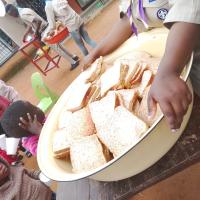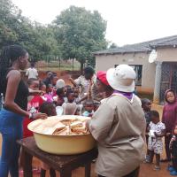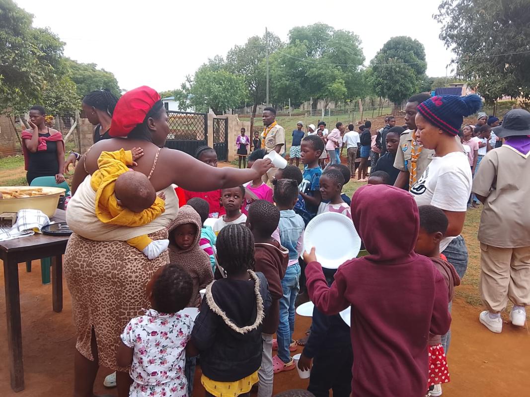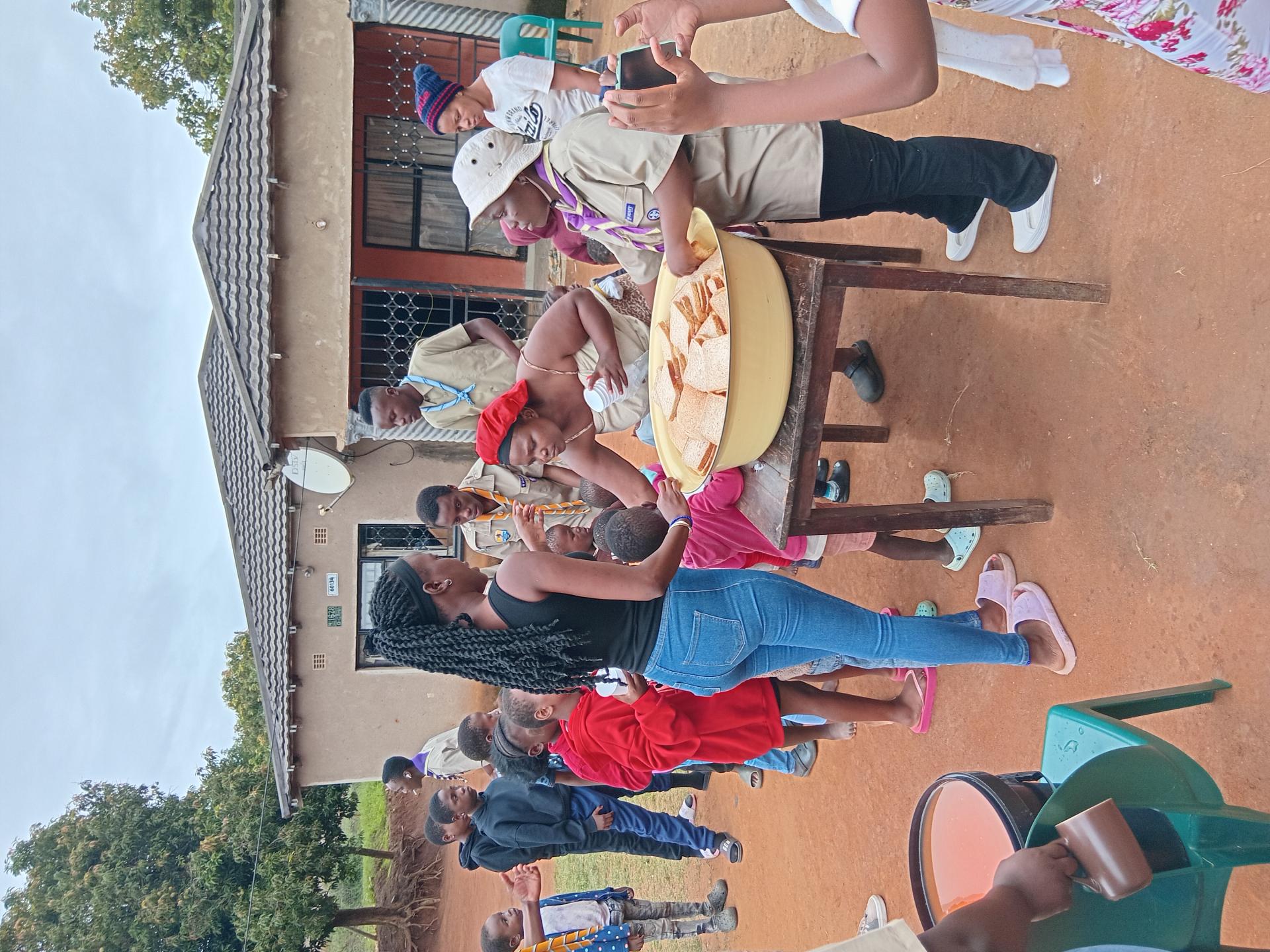 We first arrived at 12pm for setting up. Then we prepared 42 food parcels. While others were preparing for breakfast. Then when they came we first gave the parcels. Then breakfast And the day began the games(sports). Some netball then some soccer the day was fun.
