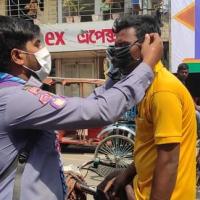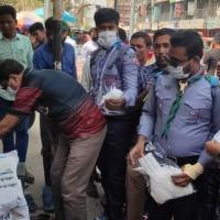জয়পুরহাট শহরে সাধারন মানুষের মাঝে মাস্ক বিতরন