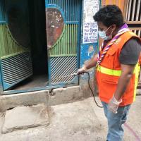 করোনা ভাইরাসের মধ্য ভাইরাস মোকাবকরার জন্য রাস্তা সঠিক নিয়ম মেনে স্সপে ছিটান।