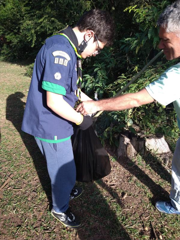 Como nosso bosque é um local público, onde pessoas passeiam e fazem piquenique em família, não poderíamos deixar que a poluição e de um local tão bonito tomasse conta então decidimos executar um mutirão de limpeza no entorno.