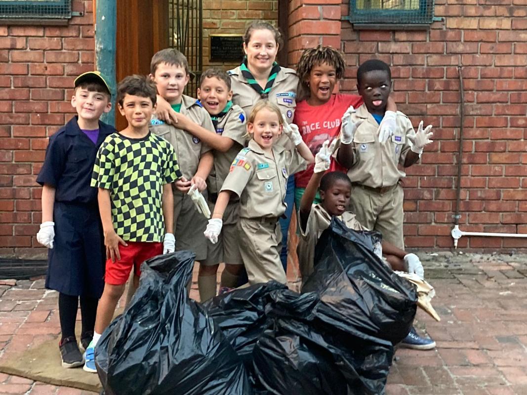 We spent time one evening after Cubs cleaning the hall grounds and surrounding canal area. Every cub was issued with some latex gloves and sent of in pairs with a black bag. The ask - Fill it as fast as possible.