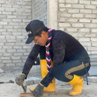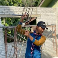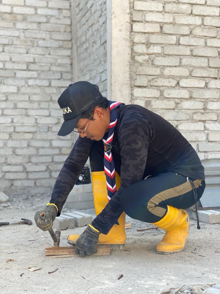Setelah selesai tugas sebagai Ketua Pembinaan Projek, saya juga meneruskan kerja pembinaan dengan memasang kotak tiang dan mengisi konkrit (simen + pasir kasar + kuari halus) dan 4 besi batang besi y10 yang diikat dengan besi kolom dan dawai bagi memastikan tunjang tiang madrasah kuat dan tahan lama. Seterusnya, penggaulan konkrit (simen + pasir kasar) bagi pengikatan bata bagi membuat dinding madrasah. Saya juga membuat dan memasang kotak bing atas dan mengisi konkrit (simen + pasir kasar + kuari halus + 4 batang besi y10 diikat dengan besi kolom dan dawai) untuk memastikan kekuatan bing atas bagi menampung berat kerangka bumbung(besi).