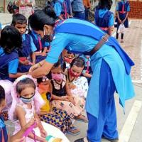 We went to our city schools on the first day of the new year i.e. 1st January where we met the children and also taught them how to deal with covid19 by giving them information about covid19. After this, we also distributed the masks made by us to the children and explained to them that you have to use the mask regularly, keep sanitizing your hands so that they can be saved from disease.