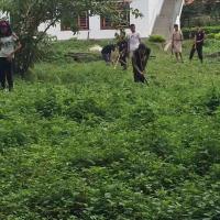 The cleaning campaign was initiated by Jomotsangkha School scouts . The whole area of the Jomotsangkha Community was made clean by picking papers, cutting grasses and burning the waste.