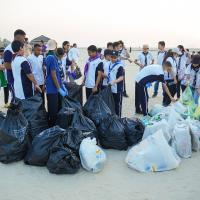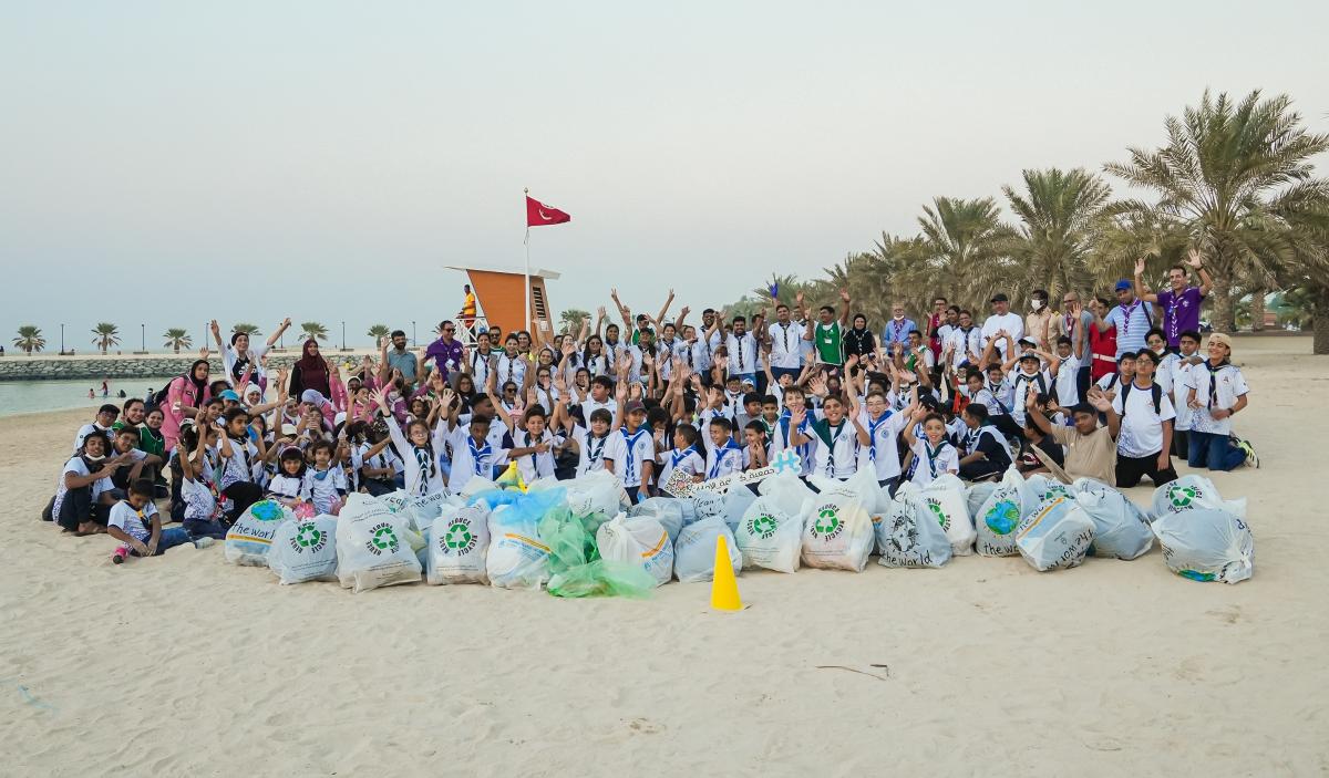 مبادرة تنظيف شواطىء الممزر دبي بطول 1453 متر تقريبا وجمع النفايات وتوزيعها في أكياس ملونة لإعادة تدوير ها من قبل مفوضية كشافةدبي بالتعاون مع مجموعات أغا خان الكشفية والإرشادية