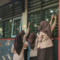 Saya bersama teman sekelas saya, berinisiatif untuk membersihkan dan membereskan sampah plastik, dedaunan bahkan mengelap jendela yang kotor akibat cipratan air hujan dari tanah dan membersihkan sampah yang mengotori halaman bahkan masuk ke saluran air, kami membersihkan itu hingga bersih lalu membuang sampah ke tempat sampah organik dan non organik sehingga berat sampah tiap harinya bisa dirata rata sekitar kurang lebihnya 2 Kg.