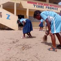 C’est suite à un constat lors de la récréation que nous avons constatés que la cour de l’école manquais d’entretient. Nous avons pris contact avec le personnel d’encadrement de l’école puis après un moment d’échange qui étais de planifier l’activité de savoir les actions à mener, Nous sommes passés à la réalisation du projet ensuite terminé l’activité par une sensibilisation de lutte contre l’insalubrité et promouvoir la paix