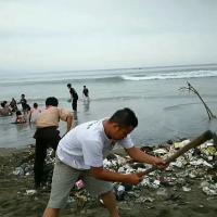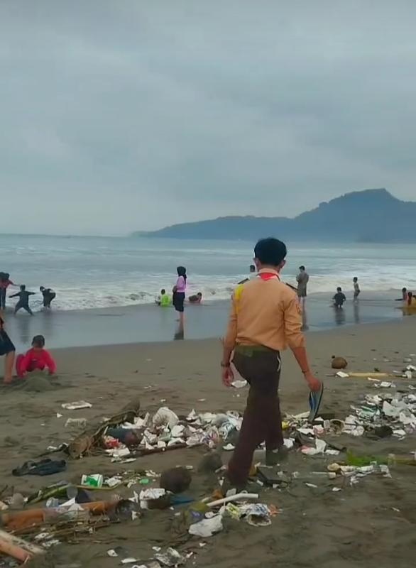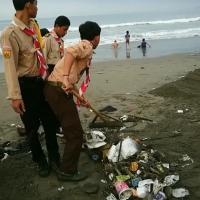 Mencoba melakukan aksi nyata, Pramuka Daarul Mustaqiem melakukan gerakan peduli kebersihan lingkungan hidup di Pantai Karang Hawu, Palabuhan Ratu.