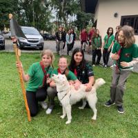 Primeiro, conversamos com a responsável da ONG para entender como poderíamos ajudar. Em seguida, produzimos um folder de divulgação para arrecadação de ração, que foi compartilhado com jovens e responsáveis. Depois, duas representantes da ONG Patudos da Rua foram até nossa sede, apresentaram o trabalho da instituição, falaram das dificuldades enfrentadas e levaram um cachorro resgatado para os jovens conhecerem.