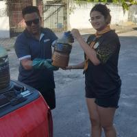 Primeiro, eu conversei com a minha família, amigos e grupo escoteiro. Expliquei o projeto e pedi ajuda para juntar óleo usado. Depois, procurei fechar parcerias com algumas empresas que poderiam doar o óleo utilizado. Quando juntei bastante, agendei uma coleta na empresa Vale Óleo Fortaleza. Recebemos a visita de um representante da empresa que fez uma palestra no grupo escoteiro e nos explicou mais alguns detalhes sobre a reciclagem.