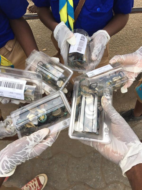 Nous sommes rendus compte que dans nos quartiers, parmi les objets et déchets qui traînent dans les rues il y a beaucoup de capsules de bouteilles. Nous sommes rendu compte que ces capsules pouvaient servir à fabriquer des nœuds de foulards pour nos frères scouts. À travers cette activité, nous débarrassons notre environnement de ces déchets et les transformons en quelque chose d'utile. Nous avons sensibilisé notre communauté sur l'entretien de notre lieu de vie. Une belle expérience !