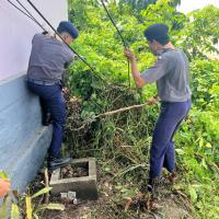 First I prepare the cleaning tools that will be used later. Second, I started to go to locations where there were lots of piles of rubbish. Then, I started cleaning the area by throwing it away to a more suitable place.