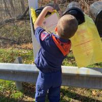 Our scouts distributed bags for food collections for our local food bank. One week the bags were delivered to almost every house in our community and the following week the bags were picked up and delivered to a central location. We had received over 500 bags of food. The scouts organized these bags into bins by food categories.
