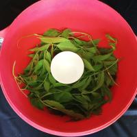 PASO 2. Acomodar las hojas de plantas y maleza alrededor del vaso / recipinte, intenta usar hojas o maleza que este a punto de secar, claro solo agarra lo verde.