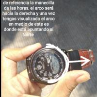 PASO 1. Para saber donde esta el Norte, debemos de alinear la manecilla de las horas (la mas pequeña) hacia el sol. En las fotografias puede ver un ejemplo de como. :)