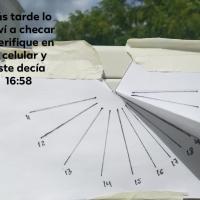 PASO 3. Una vez listo y veas que ya hay sol puedes pegarlo en la pared que escojiste y ver si la hora que se marca con la sombra es la misma que la de tu reloj de mano o la hora de tu telefono.