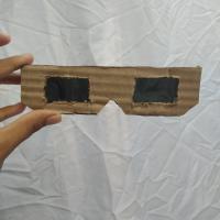 PASO 3. Ya hecho eso, recortaras el carton y pegaras los dos extremos a los lentes (ejemplo en las fotos).