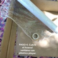 PASO 4 . A continuacion hay que cubrir el hueco de la ventana con plastico player, es importante cubrirlo bien pues con el calor se puede desprender.