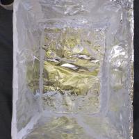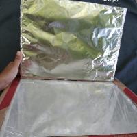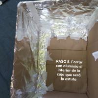 PASO 5. Ahora, utiliza la caja de la esfufa y forraras el interior de esta con aluminio, recuerda que debe de ir con el lado brillante hacia afuera para que funcione como un reflector, este paso se repite pero con la pestaña que se le hizo a la Tapa.