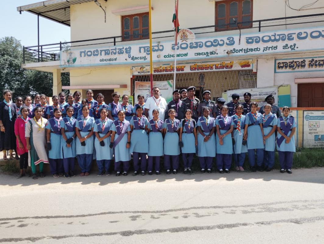 We executed the project through active participation of Scouts, Guides, Rovers, and Rangers in cleanliness drives, tree plantation, awareness campaigns, and community engagement activities in Gantaganhalli village.
