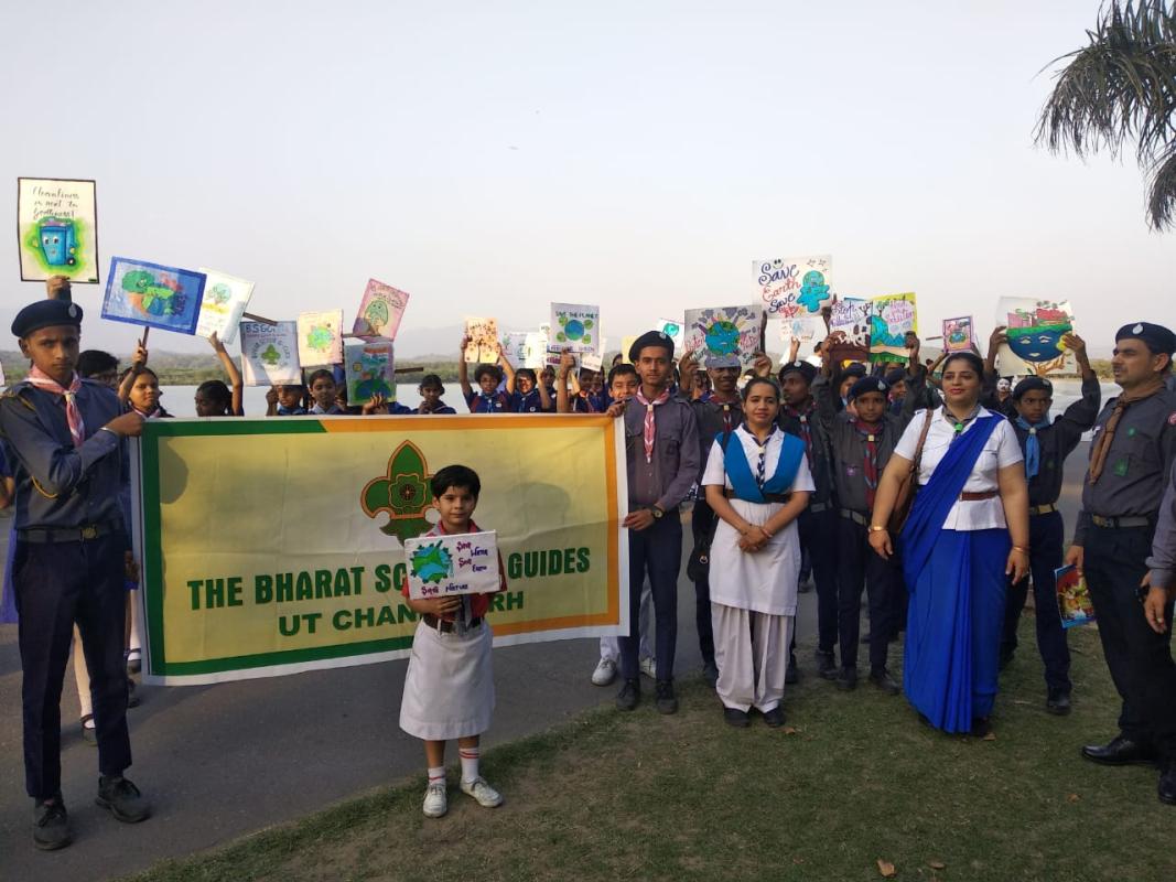I organised a social awareness camp on SUKHNA LAKE CHANDIGARH Which is a popular tourist place and public place. Many people visit there. 200 scouts and guides participated with 25 scout masters and guide captains. it was a state level social awareness rally. Many slogans were raised by all of us and a nukkad natak was also performed. Second day, A community song was performed by us and people around were also participated.
