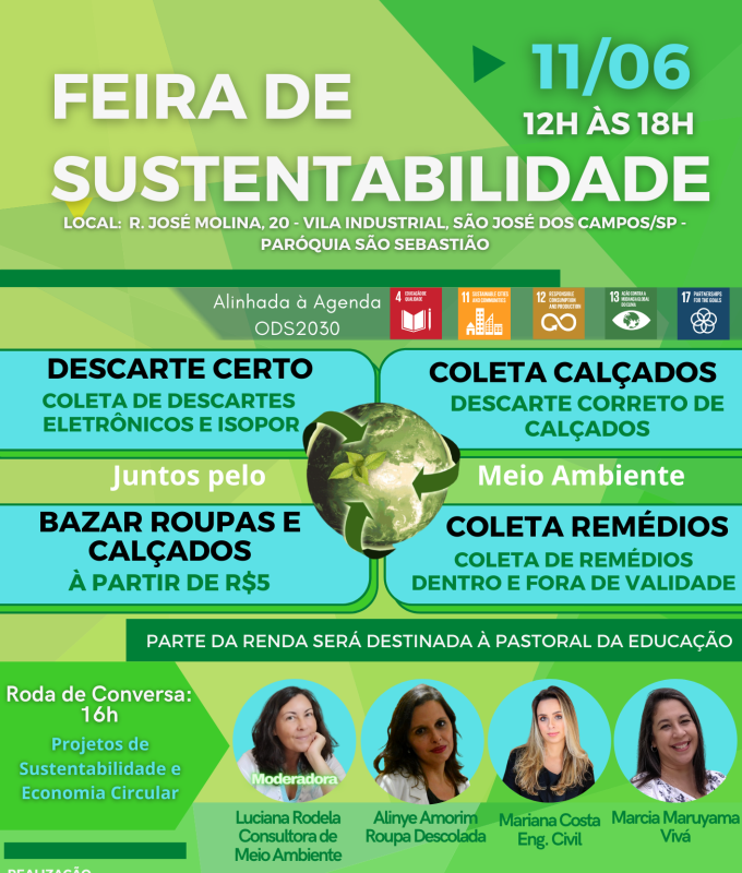 The Sustainable Fair held in partnership with the NGO Roupa Descolada is mobilizing the community to collect electronic waste, styrofoam, medicine, cooking oil and shoes for proper disposal without impacting the environment.