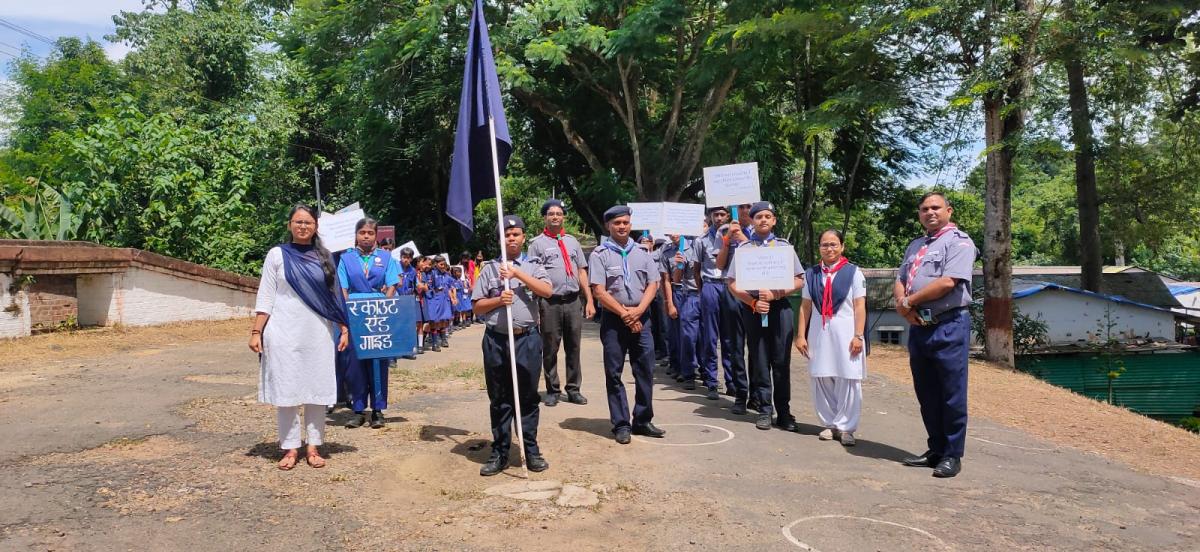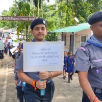 With the young Scouts, Guides, Cubs, Bulbuls as well as other students and teachers of Kendriya Vidyalaya Rangapahar Cantt. we carried out a rally in the neighborhood for creating awareness. The students made their own placards with their own slogans and illustrations.