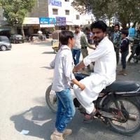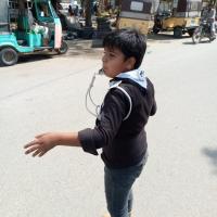 We are controlling traffic on road of karachi pakistan and telling people about that not to go wrong side of road which make accident seriously