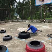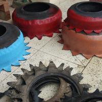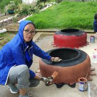 creation of flowers pots out of old tyres. it was manually created into different shapes and painted beautifully.