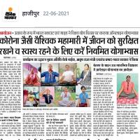 भारती स्काउट एवं गाइड ,नई दिल्ली के तत्वावधान में सातवें अंतर्राष्ट्रीय योग दिवस के अवसर पर योग उत्सव वेबीनार का आयोजन किया गया । जिसका उद्घाटन मुख्य अतिथि श्री श्रीपद येसो नाईक, आयुष राज्य मंत्री (स्वतंत्र प्रभार) भारत सरकार ने किया। इस वेबीनार के आयोजन का मुख्य उद्देश्य योग से होने वाले लाभ को ध्यान में रखकर किया गया है ।इस अवसर पर डॉ अनिल कुमार जैन राज्य सभा सांसद- सह-अध्यक्ष, डॉ केके खंडेलवाल मुख्य राष्ट्रीय आयुक्त भारत स्काउट एवं गाइड, डॉ नूतन पखारे ने भी अपने विचार रखते हुए बताया कि योगाभ्यास से हमारा शारीरिक ,मानसिक तथा बौद्धिक विकास होता है। हमें नियमित रूप से योगाभ्यास करने की जरूरत है। वैशाली जिले के चयनित 15 प्रतिभागियों ने इस कार्यक्रम में हिस्सा लिया । वहीं दूसरी तरफ सातवें अंतरराष्ट्रीय योग दिवस के अवसर पर भारत स्काउट एवं गाइड ,वैशाली के तत्वाधान में ऑनलाइन योग उत्सव का आयोजन जिला स्तर पर किया गया । इस मौके पर जिला संगठन आयुक्त ऋतुराज ने कहा कि साफ मन से योग करें, समय का सदुपयोग करें। योग करने से शरीर के सारे विकार दूर हो जाते हैं। स्वस्थ शरीर में ही स्वस्थ मन का विकास होता है ।इस कोरोना जैसे वैश्विक महामारी से बचने के लिए हमें नियमित योगाभ्यास करने की जरूरत है । जिला स्तर पर आयोजित ऑनलाइन उत्सव में 145 लोगों ने एक साथ ऑनलाइन योग किया योग शिक्षक निरंजन कुमार ने योग कराया। कार्यक्रम का संचालन रोवर स्काउट लीडर श्री उमेश कुमार सिंह ने किया, और कहां की आज के परिवेश में वही व्यक्ति स्वस्थ है जो नियमित योग करता है । भारत स्काउट एवं गाइड के जन्मदाता वेडेन पावेल द्वारा बताए गए बी०पी० सिक्स का यदि नियमित अभ्यास किया जाए, तो हमारे शरीर के सारे विकार दूर हो जाएंगे और हम स्वस्थ हो जाएंगे। शिविर में योग गुरु निरंजन कुमार सिंह ने अनुलोम- विलोम, प्राणायाम ,सूर्य नमस्कार, कपालभाति योग कराते हुए कहा कि कोरोना जैसे वैश्विक महामारी से बचाव में योग काफी असरदार साबित हुआ है ।उत्सव में स्काउट मास्टर नरेंद्र कुमार सिंह, जितेश कुमार, मोहम्मद इबरार, मोहम्मद इमरान हसन अंसारी, मकेत कुमार, उमेश तिवारी गाइड कैप्टन अन्नू कुमारी ,जागृति, प्रीति सिंह सहित दर्जनों शिक्षक शिक्षिकाओं ने भाग लिया ।इस मौके स्काउट गाइड द्वारा सूर्य नमस्कार एवं योग के विभिन्न आयामों का प्रतियोगिता आयोजित किया गया , जिसमें अंकिता चौहान, रिशु कुमार, रित्विक राज, सिद्धांत, कुमार आर्यन, रितिक, ने अपना प्रदर्शन दिखाया। कार्यक्रम का समापन राष्ट्रगान से किया गया।